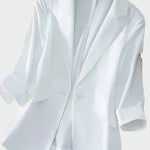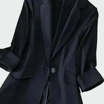 Elegantní blazer s nadčasovým střihem a moderním designem. Disponuje klopami, předním zapínáním na jeden knoflík a dlouhými rukávy s dekorativními knoflíky na manžetách. Jeho rovný střih jej činí ideálním pro pracovní příležitosti, stejně jako pro uvolněnější okamžiky. Kousek, který dodává styl a sofistikovanost každému outfitu.
