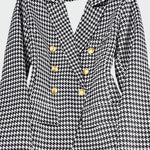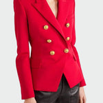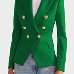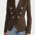 Impozantní blazer s cutem, který zvýrazňuje siluetu a podtrhuje styl. Má elegantní klopu, dvojité zapínání na přední straně s knoflíky a dvě boční kapsy s klopou. Jeho nadčasový design ho činí ideálním pro obchodní příležitosti i večerní vycházky, poskytující sebevědomí a sofistikovanost v každé situaci.
