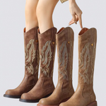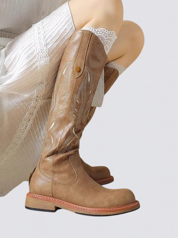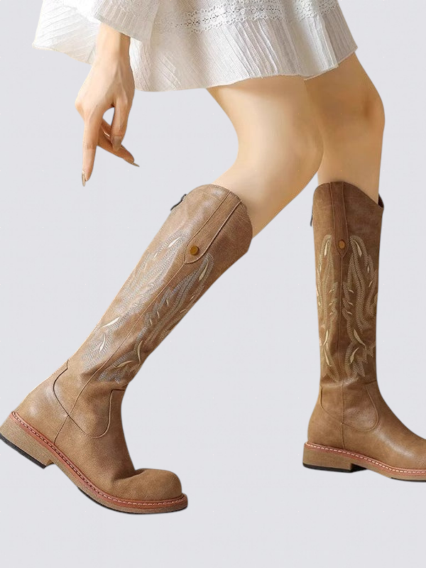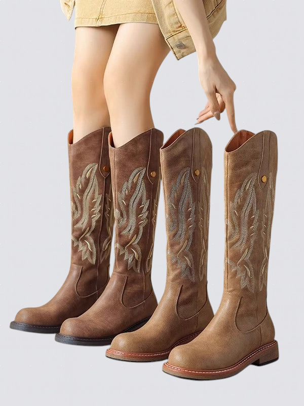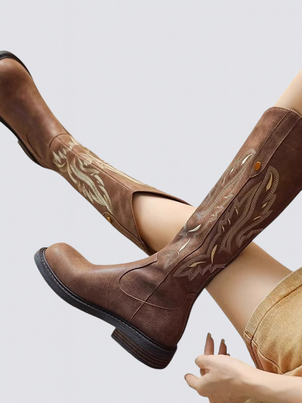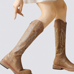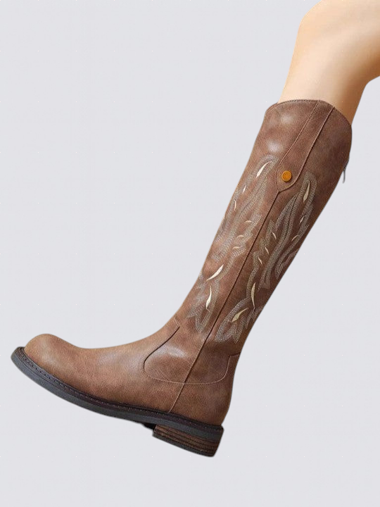 Kozačky Catarina v hnědé barvě přinášejí do vaší sbírky unikátní styl s rustikálním nádechem. Vyrobené z kvalitní kůže, tyto kozačky jsou zdobeny elegantním výšivkovým vzorem, který přidává originální a sofistikovaný vzhled. Robustní podpatek a pohodlný střih zajišťují stabilitu a komfort po celý den, zatímco design s otevřeným bočním detailem dává botám moderní nádech.