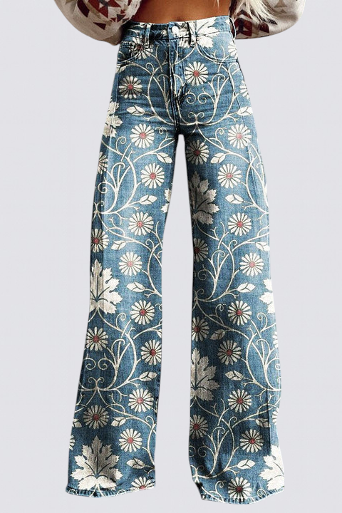 ALEXIA Vintage Kalhoty 70. let jsou milostný dopis bezstarostné éry odvážných vzorů a bez námahy půvabu. S propracovanou květinovou výšivkou na opraném denimu spojují nostalgii s sebevědomím — jsou určeny pro ty, kteří nosí svobodu se stylem.