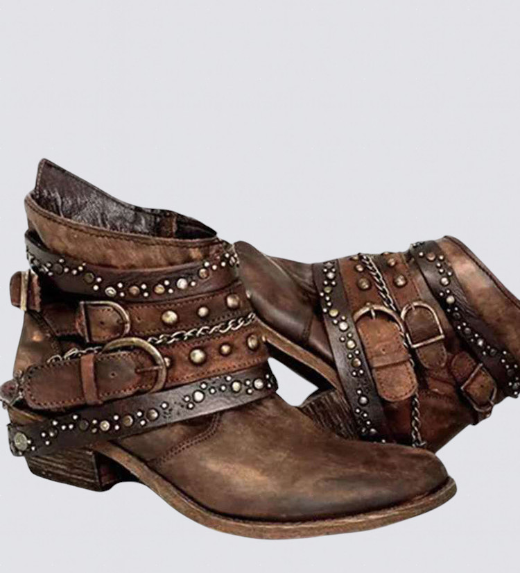 CATARINA - Vintage boty s přezkami a hroty