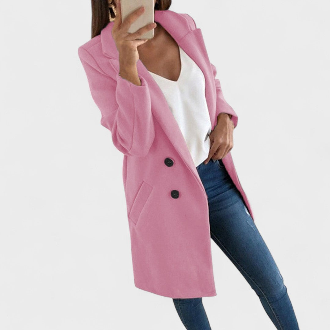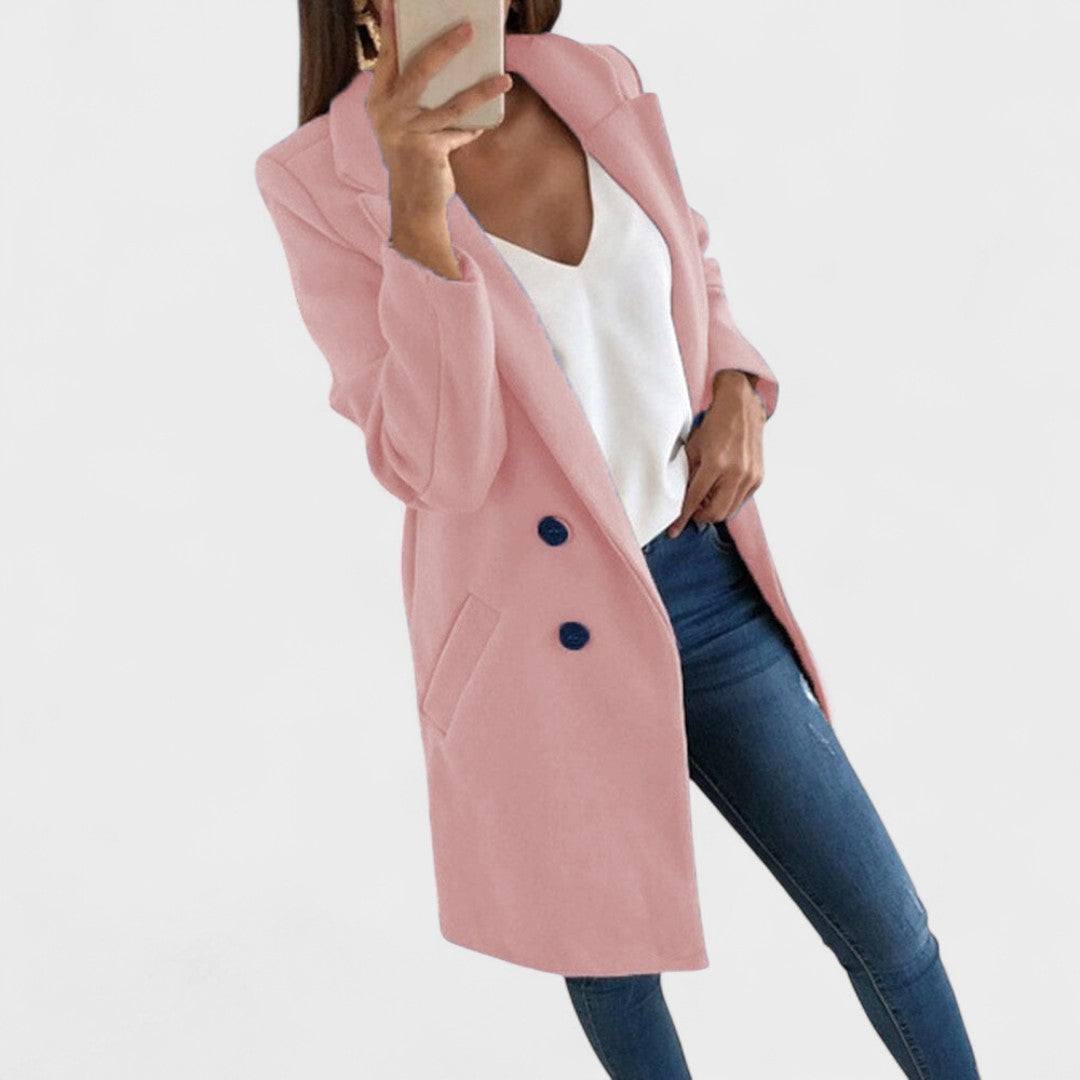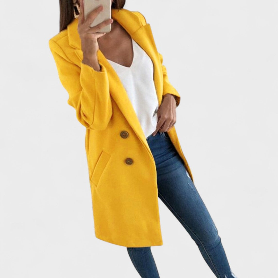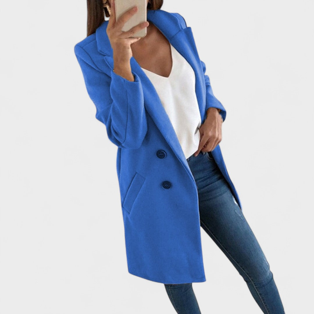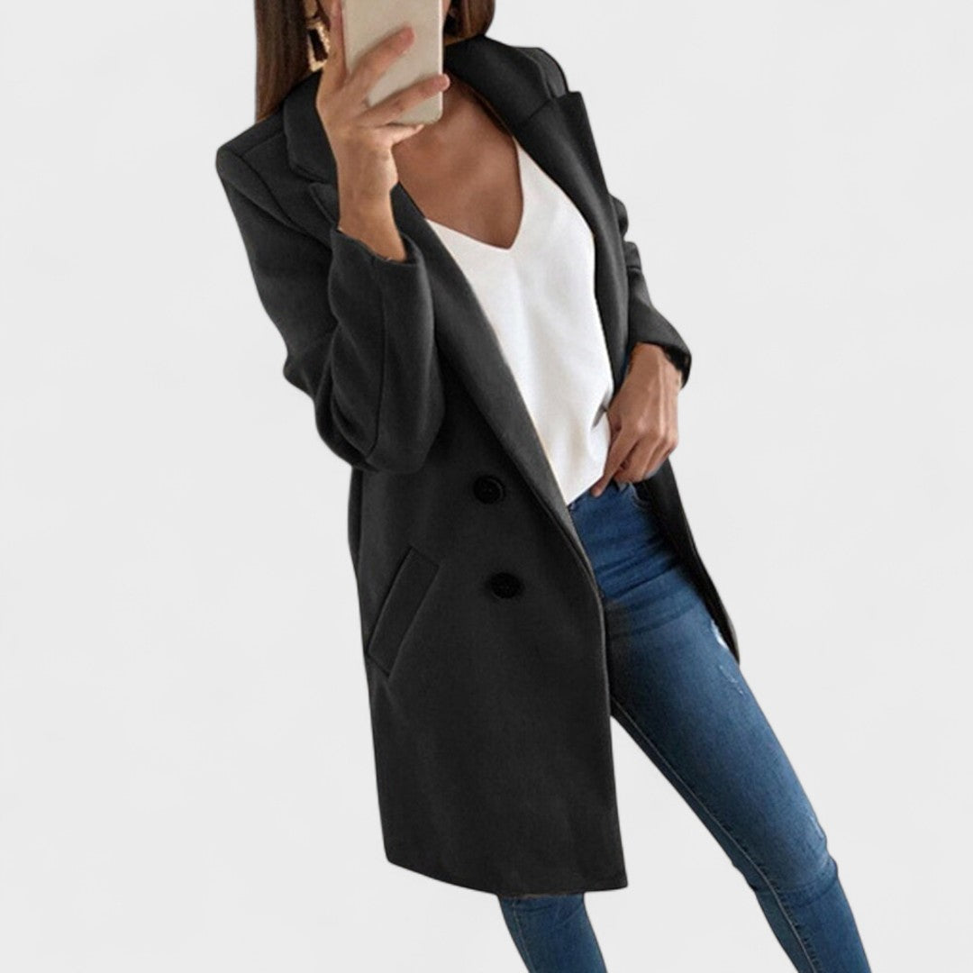 Jemný bavlněný kabát s klasickými klopami a čistými liniemi pozvedne jakýkoli outfit — od džínů po business oblečení. Přímý střih a délka do stehna poskytují rafinovaný vzhled, zatímco praktické boční kapsy a zapínání na dvě tlačítka zajišťují funkčnost a pohodlí při nošení. Ideální pro přechodná období a každodenní eleganci.
