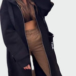 Dlouhý kabát s kapucí, který kombinuje eleganci a praktičnost. Jeho pohodlný střih ho činí ideálním pro každodenní nošení, zatímco jeho nadčasový design dodává styl každému outfitu. Kousek, který poskytuje teplo a sofistikovanost během chladných dnů.