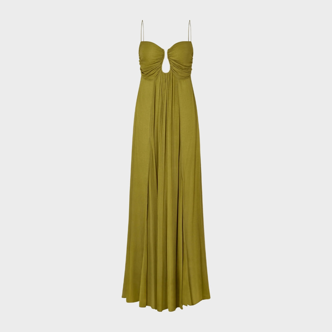 Tyto maxi šaty nabízejí elegantní siluetu s pohodlným materiálem. Detail s otvorem přidává jemné kouzlo, ideální pro denní i večerní akce.