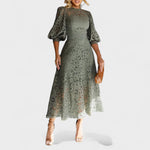 • Elegantní a jemný design – lanternové rukávy a krajka dodávají šatům lehký a rafinovaný vzhled.