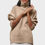 Tento svetr s vysokým límcem je dokonalou definicí pohodlí spojeného s elegancí. Díky volnému střihu a žebrovaným detailům se snadno přizpůsobí různým stylům – od casual po sofistikovaný.