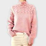 Dámský pletený svetr kombinuje nadčasovou eleganci s maximálním komfortem. Strukturovaný pletený design z něj dělá skutečně impozantní kousek – ideální pro každodenní nošení, do kanceláře nebo na relaxační chvíle. Pohodlný vysoký límec a dlouhé rukávy poskytují příjemné teplo, zatímco volný střih umožňuje svobodu pohybu.