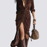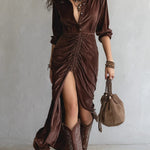 Představujeme vintage plisované midi sametové šaty s knoflíky, výjimečný kousek, který dokonale kombinuje nadčasovou eleganci s moderní sofistikovaností. Vyrobené z vysoce kvalitního sametu, tyto midi šaty vyzařují pocit luxusu a mají lichotivou siluetu, ideální pro jakoukoli příležitost.
