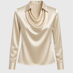 Tato sofistikovaná blouza s drapovaným výstřihem a saténovým povrchem nabízí luxusní vzhled a lichotivou siluetu. Je ideální do kanceláře a na večerní akce, kde je důraz kladen na styl a eleganci. Kombinujte ji s sukní nebo elegantními kalhotami pro bezstarostný a stylový vzhled.